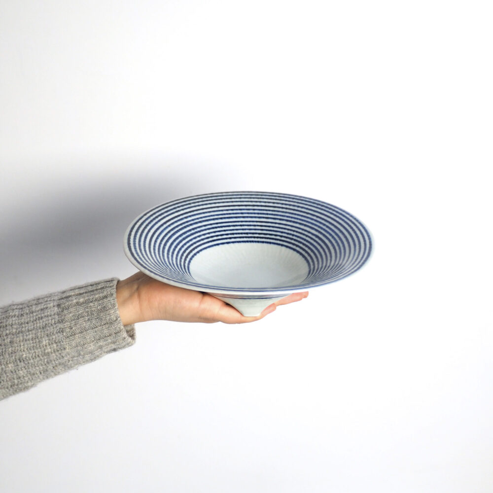 The slightly thick-bodied shape of the AIKOMA series exudes warmth with hand-painted lines of varying shade and stress. The face of each dish is beautifully sculpted using the traditional KANNABORI technique, a Japanese form of decorative chattering. Enjoy the unique, hand-painted look and feel of each pattern!