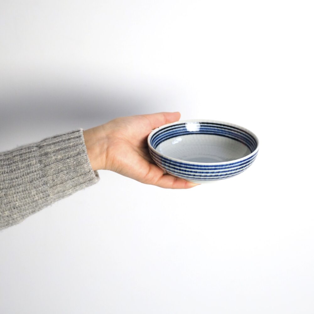 The slightly thick-bodied shape of the AIKOMA series exudes warmth with hand-painted lines of varying shade and stress. The face of each dish is beautifully sculpted using the traditional KANNABORI technique, a Japanese form of decorative chattering. Enjoy the unique, hand-painted look and feel of each pattern!