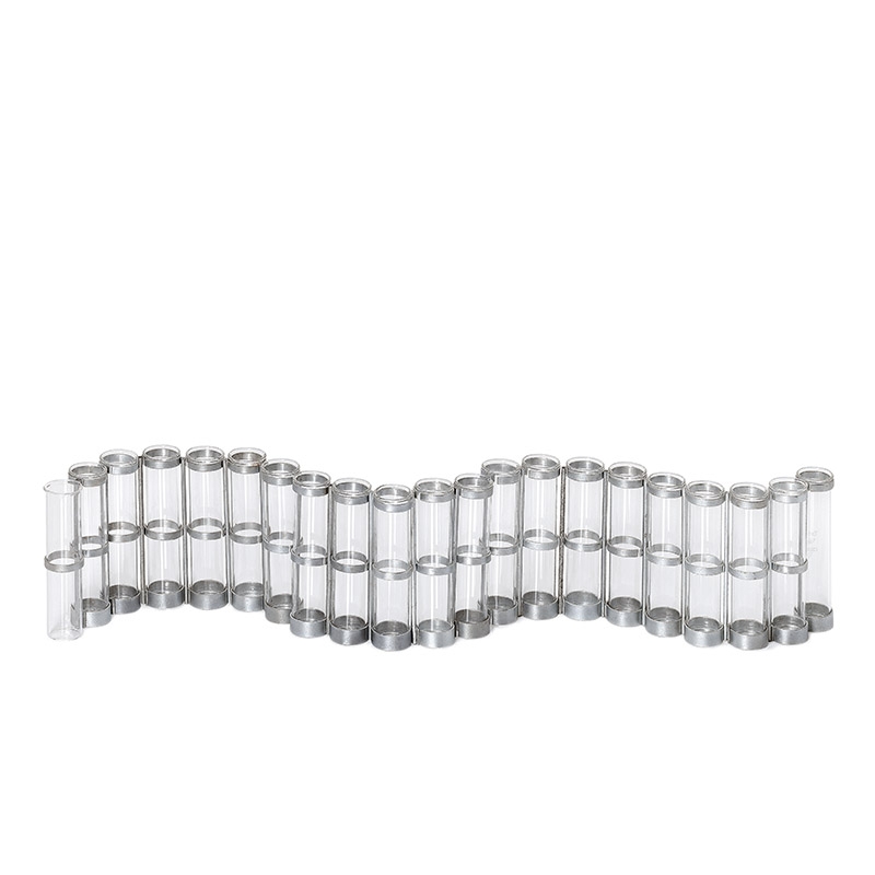 Die Rohre können unabhängig voneinander von der Reihe abgetrennt werden, um autonome Segmente zu bilden. Auf diese Weise kann die Vase verkürzt werden, oder durch einfaches Zusammenfügen von zwei oder mehr Vasen kann jede beliebige Länge erreicht werden.