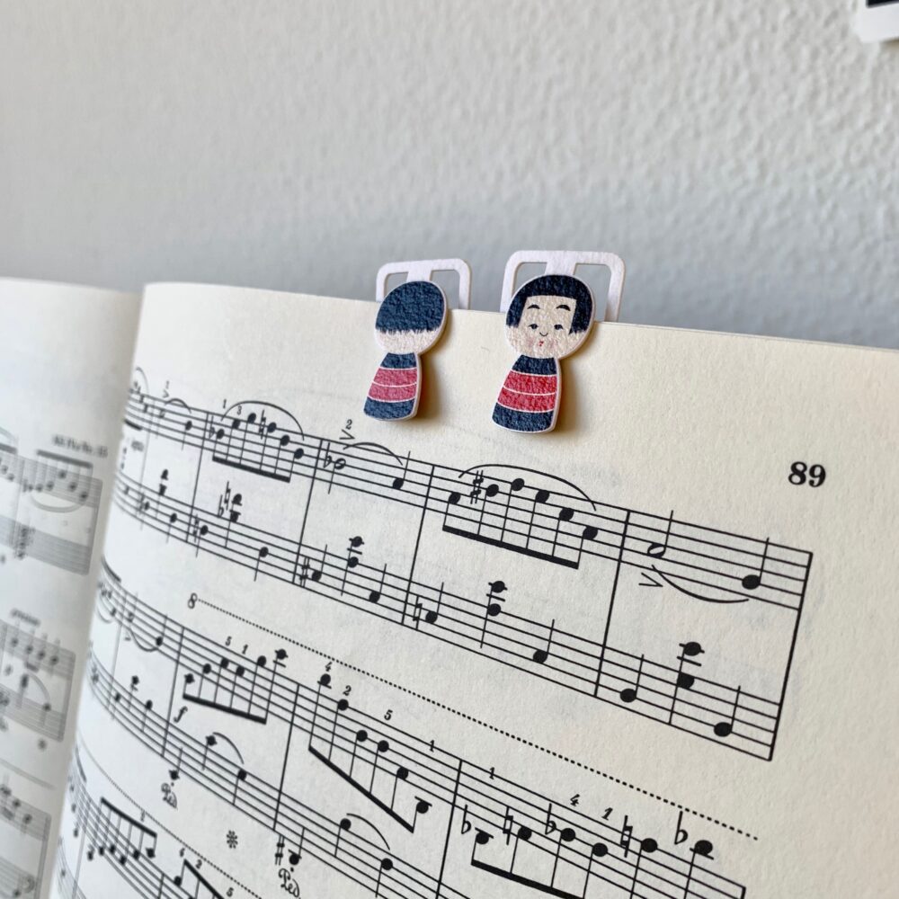 Niedliche Büroklammern im japanischen Holzpuppen-Design, beidseitig bedruckt.