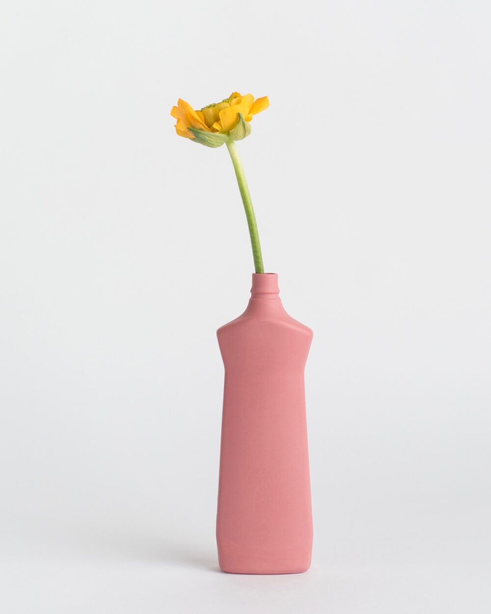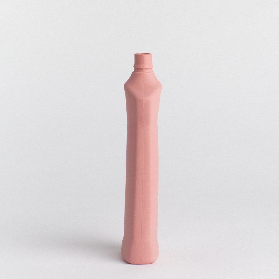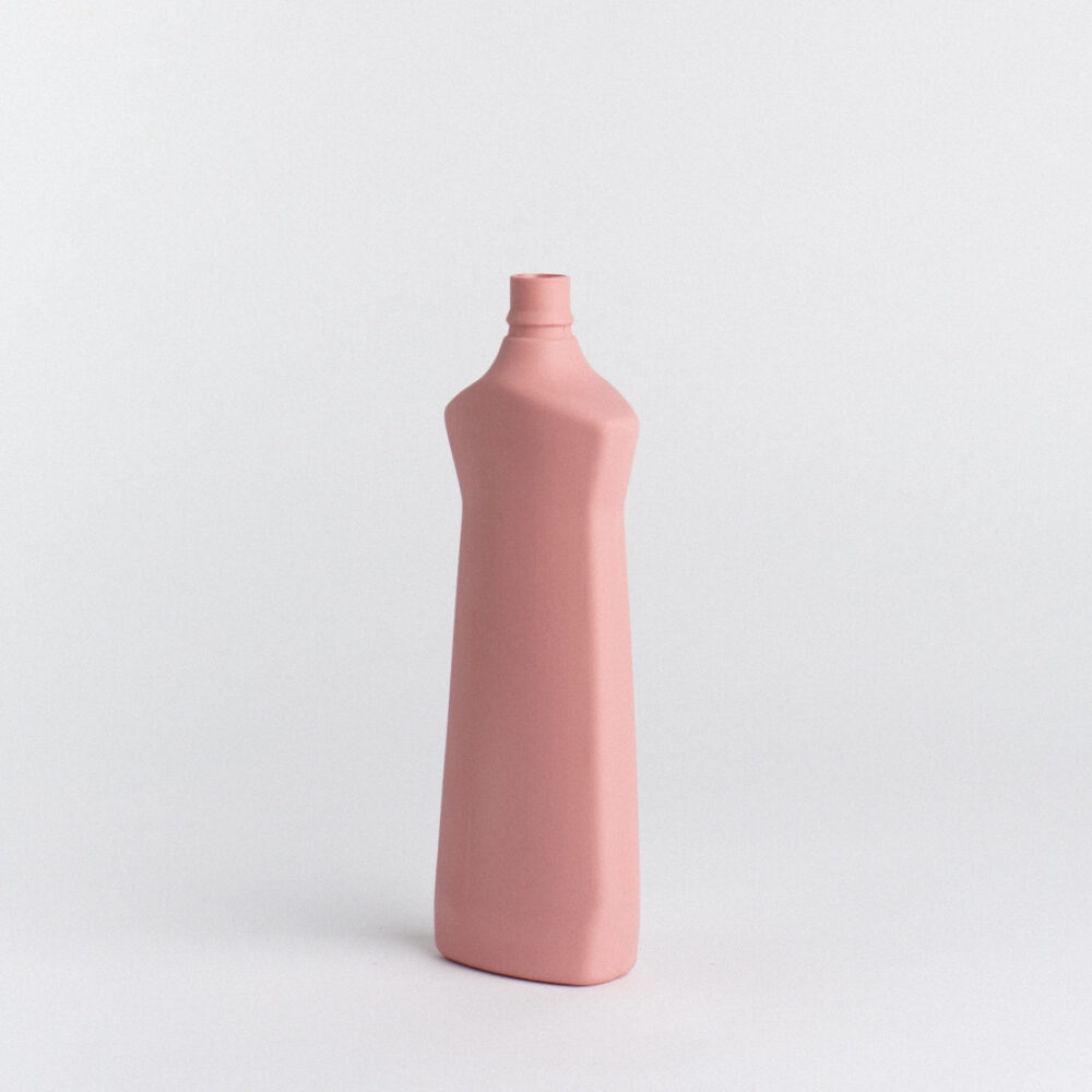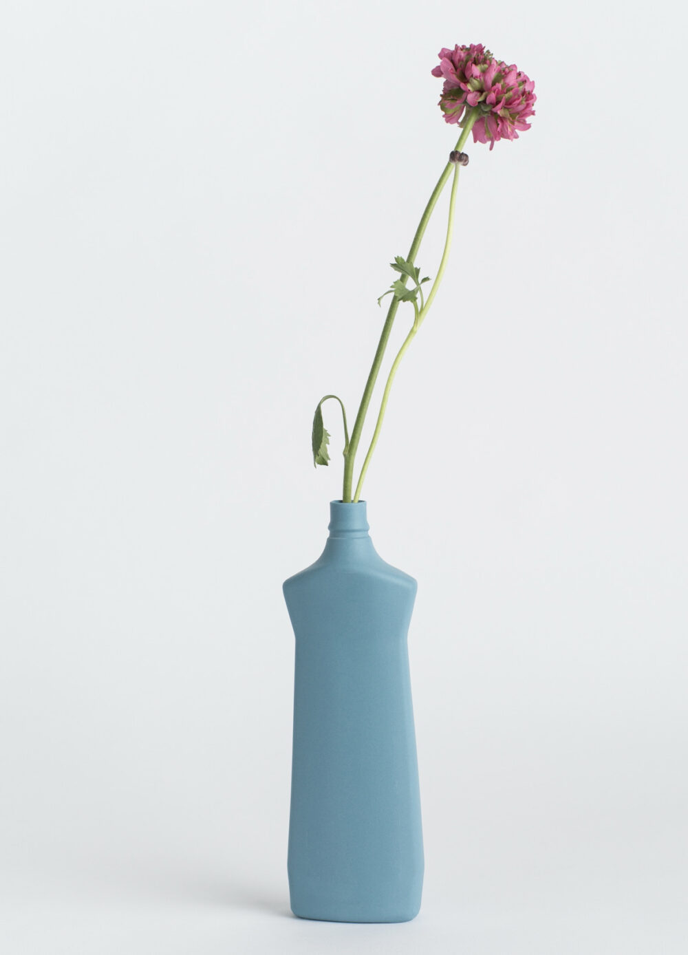 Taking inspiration from that serious situation, she created the porcelain bottle vase. By making durable porcelain copies of the material, she is trying to spread awareness of this growing problem.