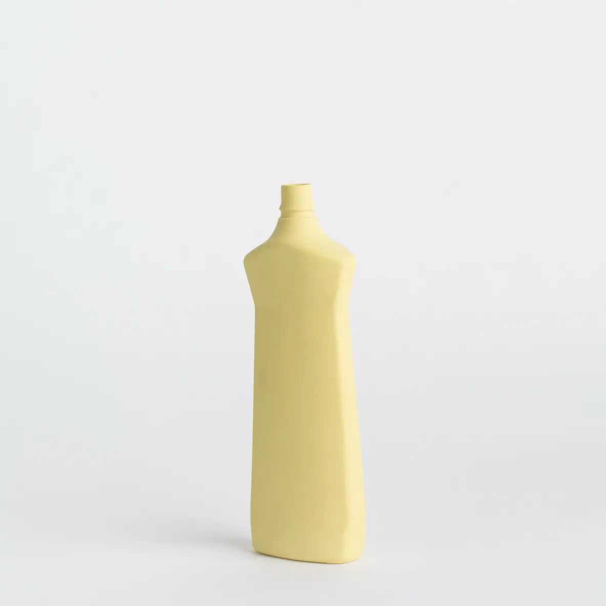 This series is hand made by Middle Kingdom Porcelain in Jingdezhen. The plastic bottles are used to create molds. Pigmented liquid porcelain is poured into the molds, leaving a thin layer that forms the shape. After drying, the inside of the bottle is glazed lead-free and fired at 1300ºC. All this handwork is done by a team of seven craftsmen, therefore none of the bottles are exactly the same. The picture shown is an indication, minor changes in color are possible. Overall the surface is smooth but small defaults do occur and should be considered as a quality of the product. Vases will be shipped plastic-free, double boxed, and come with a brochure.
