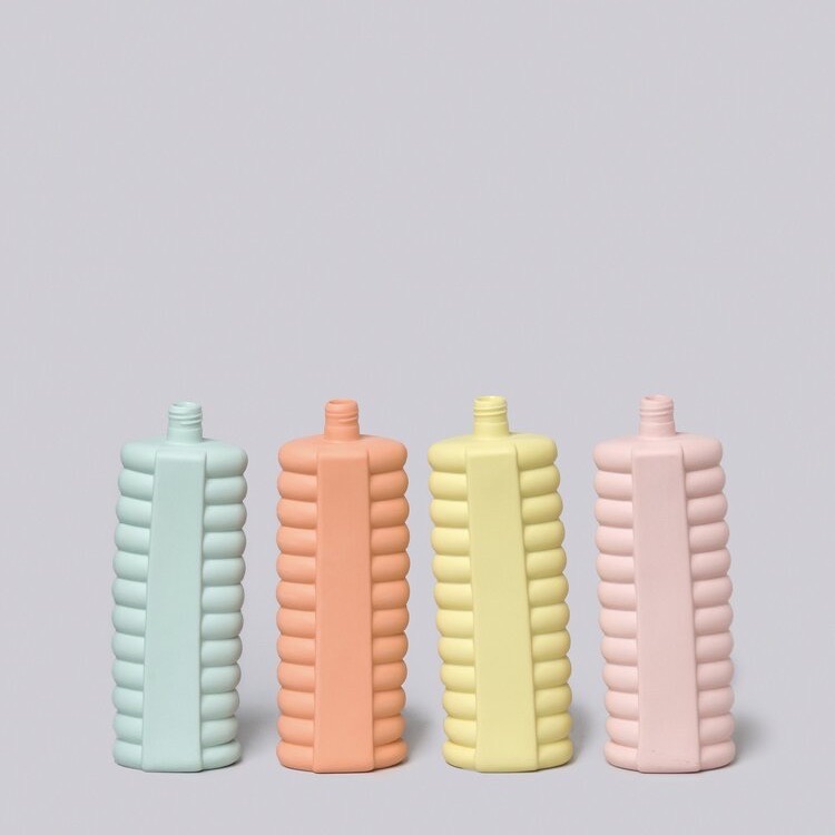 This series is hand made by Middle Kingdom Porcelain in Jingdezhen. The plastic bottles are used to create molds. Pigmented liquid porcelain is poured into the molds, leaving a thin layer that forms the shape. After drying, the inside of the bottle is glazed lead-free and fired at 1300ºC. All this handwork is done by a team of seven craftsmen, therefore none of the bottles are exactly the same. The picture shown is an indication, minor changes in color are possible. Overall the surface is smooth but small defaults do occur and should be considered as a quality of the product. All porcelain bottle vases will be shipped plastic-free, double boxed, and come with a brochure.