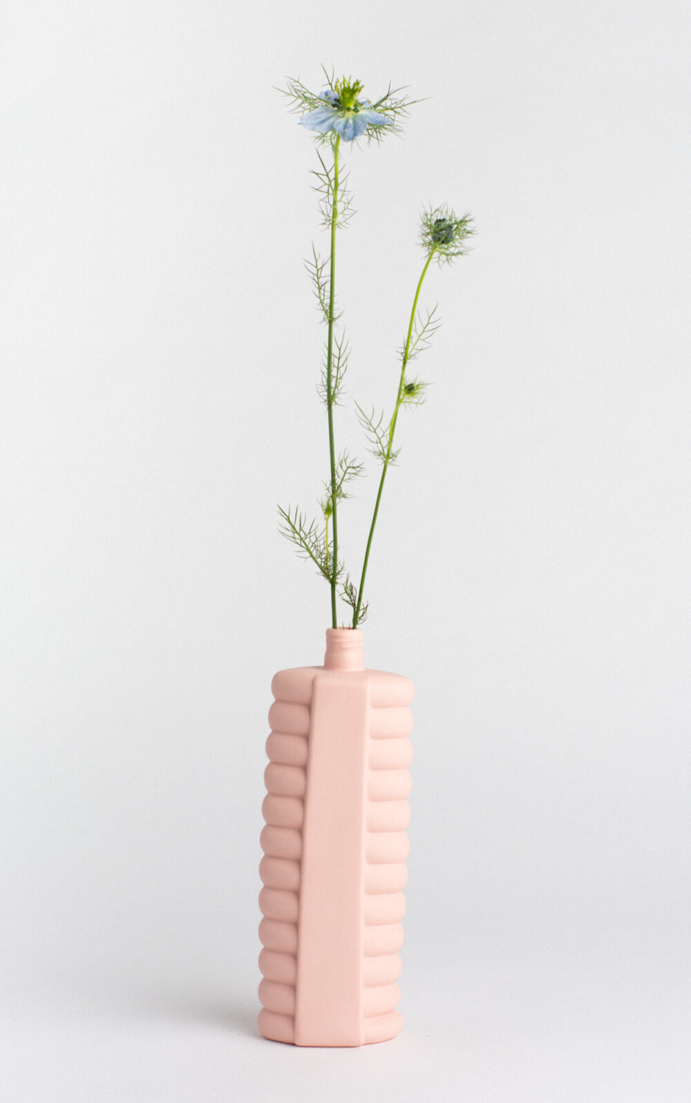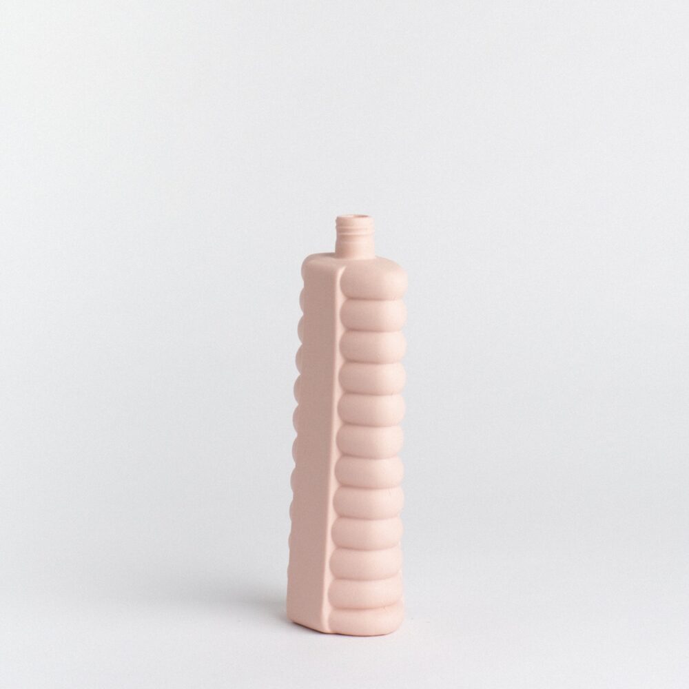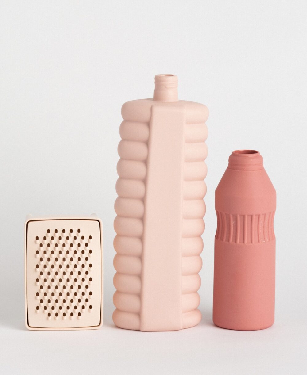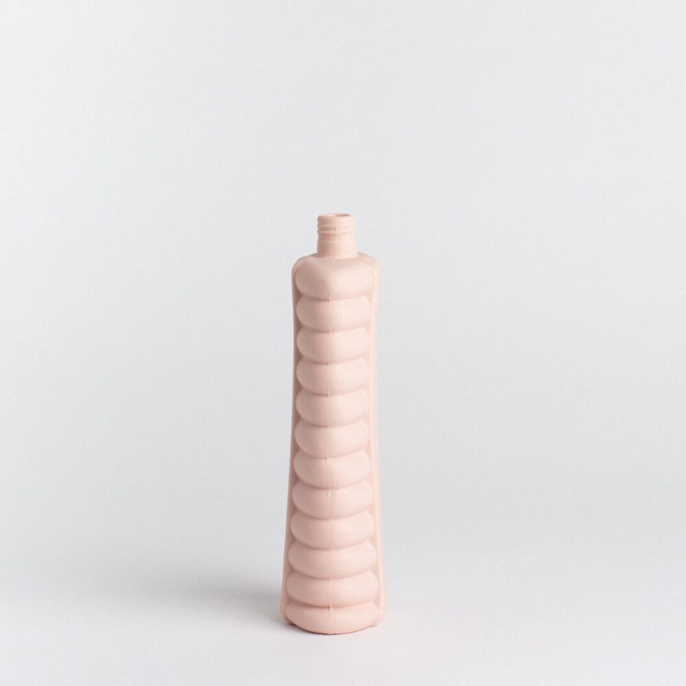 Taking inspiration from that serious situation, she created the porcelain bottle vase. By making durable porcelain copies of the material, she is trying to spread awareness of this growing problem.