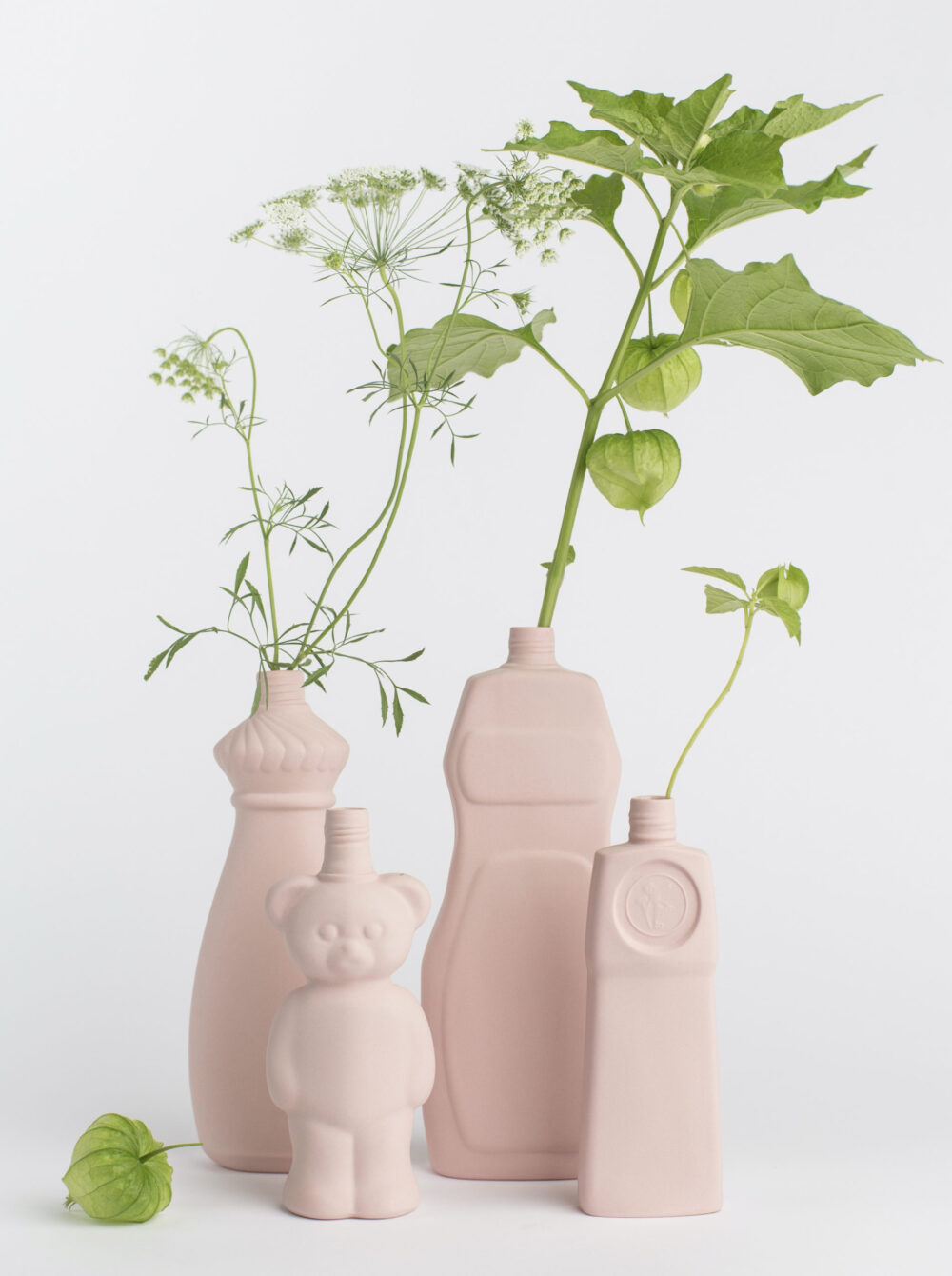 Taking inspiration from that serious situation, she created the porcelain bottle vase. By making durable porcelain copies of the material, she is trying to spread awareness of this growing problem.
